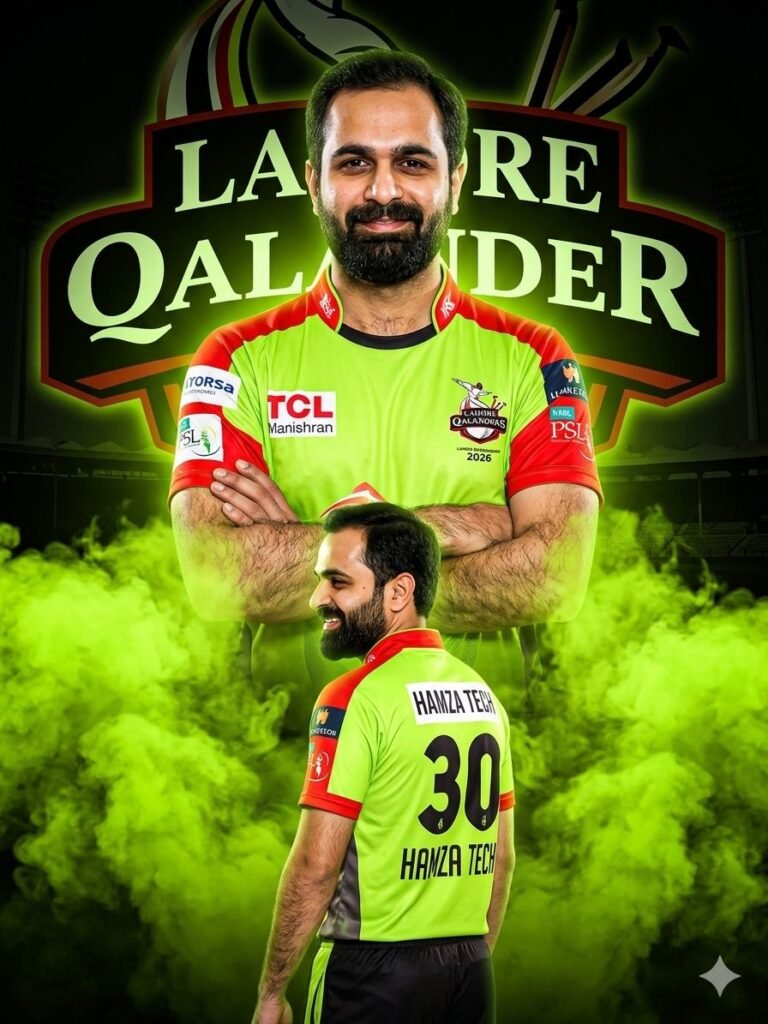 The team is [LAHORE QALANDER]. Design everything according to this team’s official identity, colors, and branding.